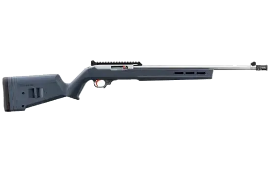 In celebration of the 60th Anniversary of the timeless 10/22 rimfire carbine, Sturm, Ruger & Co., Inc. is proud to introduce the Sixth Edition of the Ruger Collector's Series - the 60th Anniversary 10/22 Carbine. This rifle features a stainless steel barrel and silver-finished receiver paired with a Gray Magpul Hunter X-22 stock. The blackened bolt is laser engraved with a unique 60th Anniversary marking. The rifle is accented with a red bolt handle and trigger and utilizes popular 10/22 features like a non-glare blade front sight, ghost ring adjustable rear aperture sight, extended magazine release, and a Picatinny rail. The 60th Anniversary 10/22 ships in a Collector's Series box with a Sixth Edition Ruger Collector's Series metal street sign and pin.