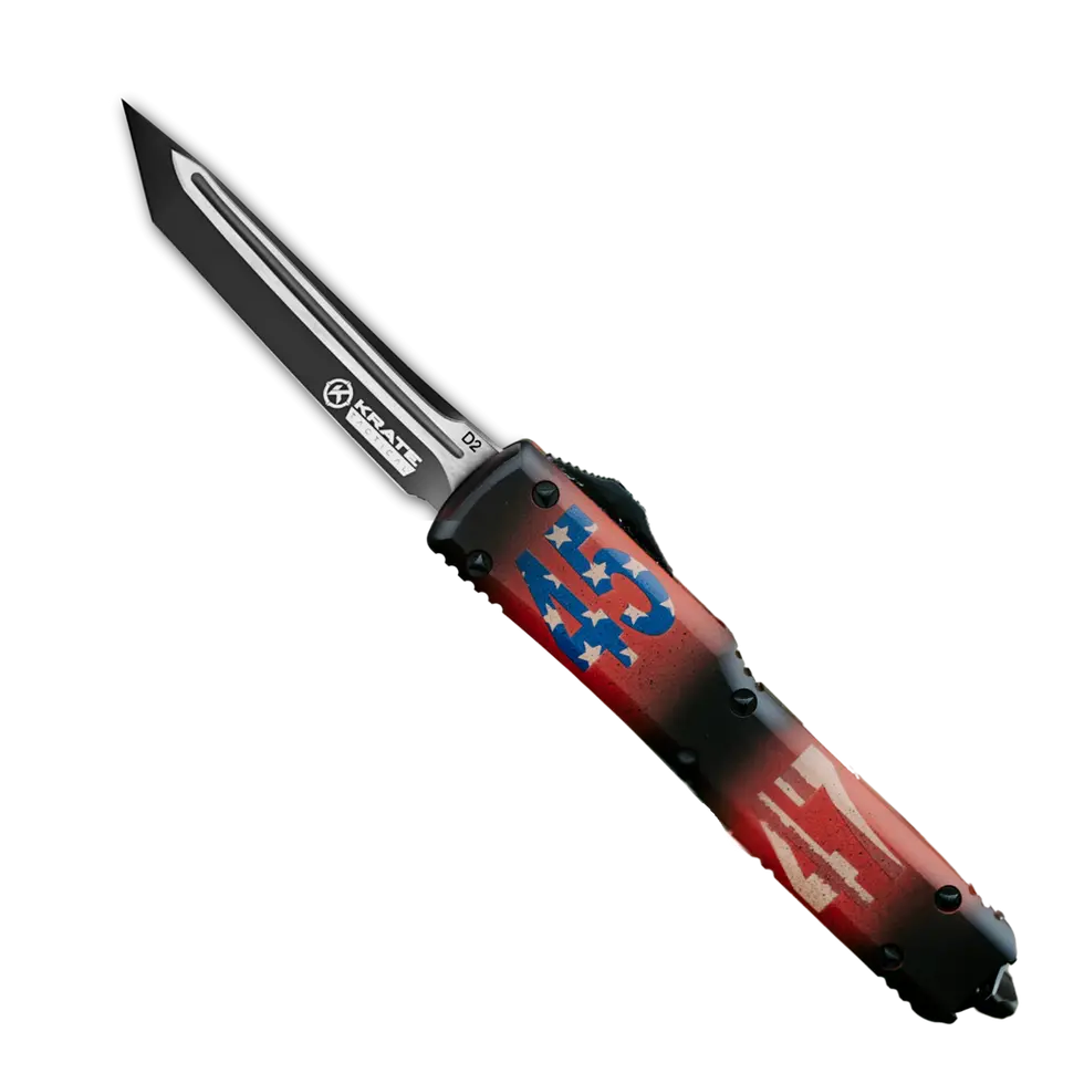 Featuring a unique 45-47 design, this limited edition OTF combines strength, versatility, and performance. The OTF (out-the-front) knife (patent pending) is the perfect companion when duty calls. With a lightweight yet sturdy feel, the knife features a razor-sharp single-edged blade and a contoured handle. Crafted for EDC, Krate knives are reliable, wear-resistant, and covered under a generous lifetime warranty. Every purchase includes a disassembly tool for efficient cleaning, inspecting, or repairs.