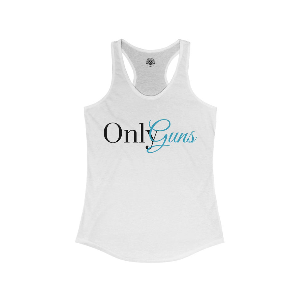 We all knew what your thinking. Cheeky S.O.B, Only Guns allowed here! Our women's Racerback Tank is sure to get those minds twisted and those guns a blazin'!